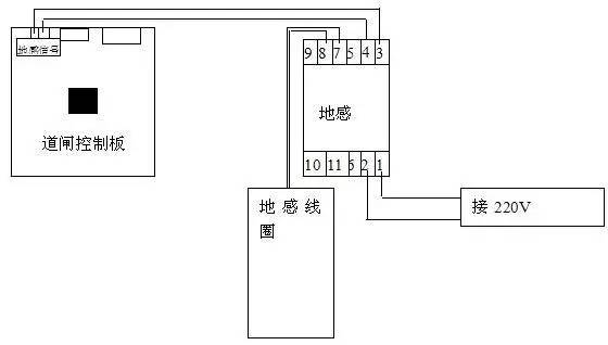 看了上面的示意图,我们知道是地感线圈感应车出现的问题,至于怎么会出现这个问题,我们先简单的介绍一下道闸与地感的工作原理,下面是连接示意图.
